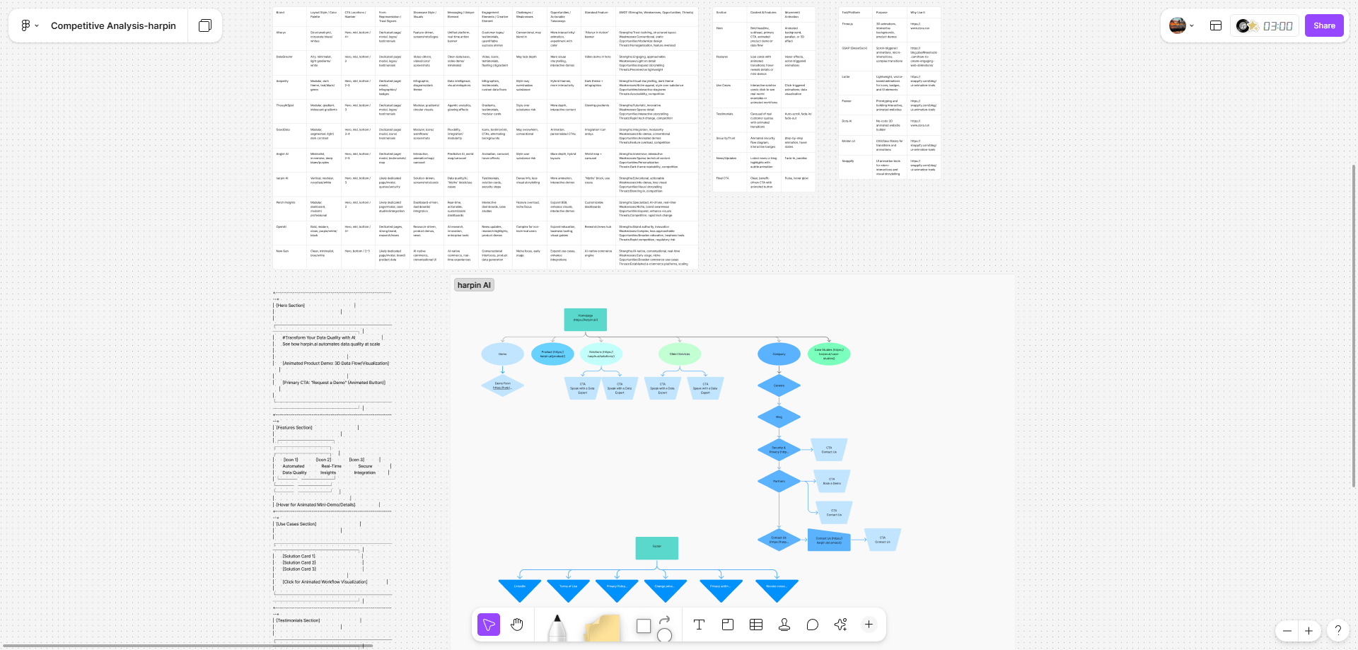 Structural Insights: After conducting the competitive analysis, I captured screenshots of top players and ran them through ChatGPT to uncover the most common page structures driving engagement (hero + CTA, logo wall, feature cards, customer stories). These insights informed Harpin’s new responsive layout, balancing familiar UX patterns with distinctive storytelling and visuals tailored to its enterprise audience.