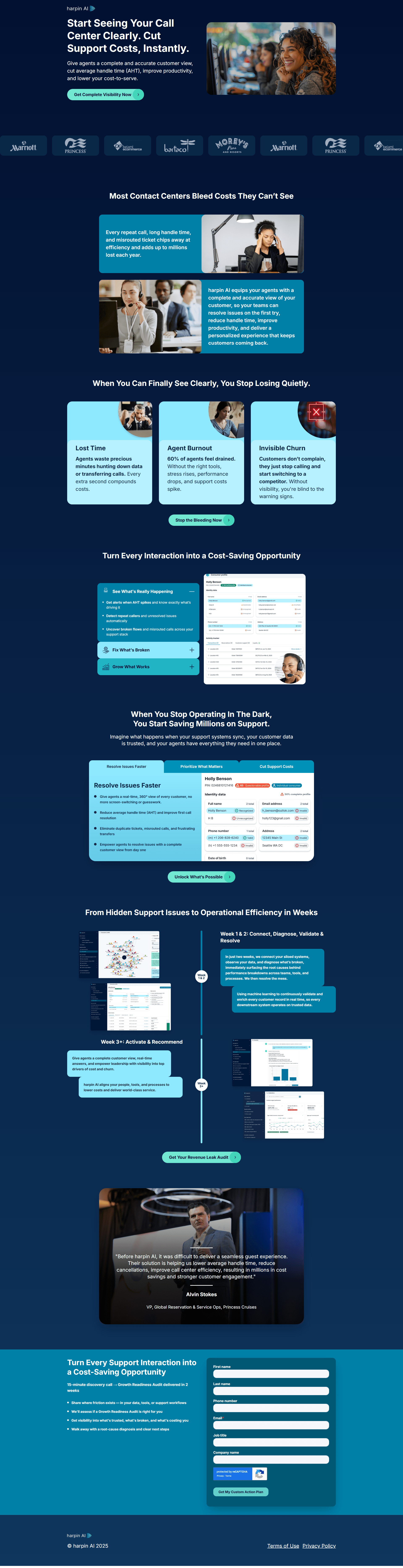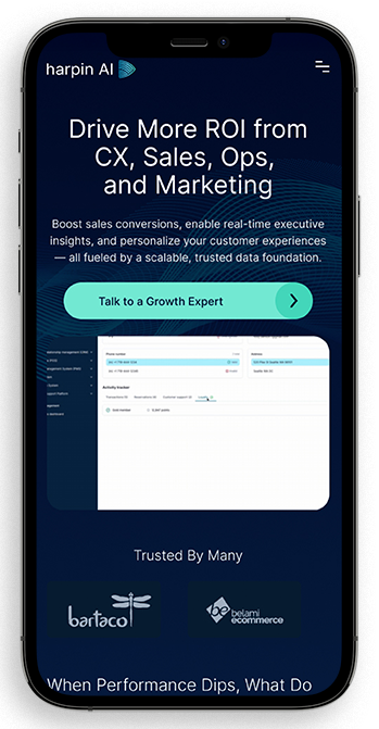 1. Clarity wins: Above-the-fold must immediately communicate ROI impact—how Harpin AI boosts conversions, cuts costs, and drives growth for CX, Sales, Ops, and Marketing.