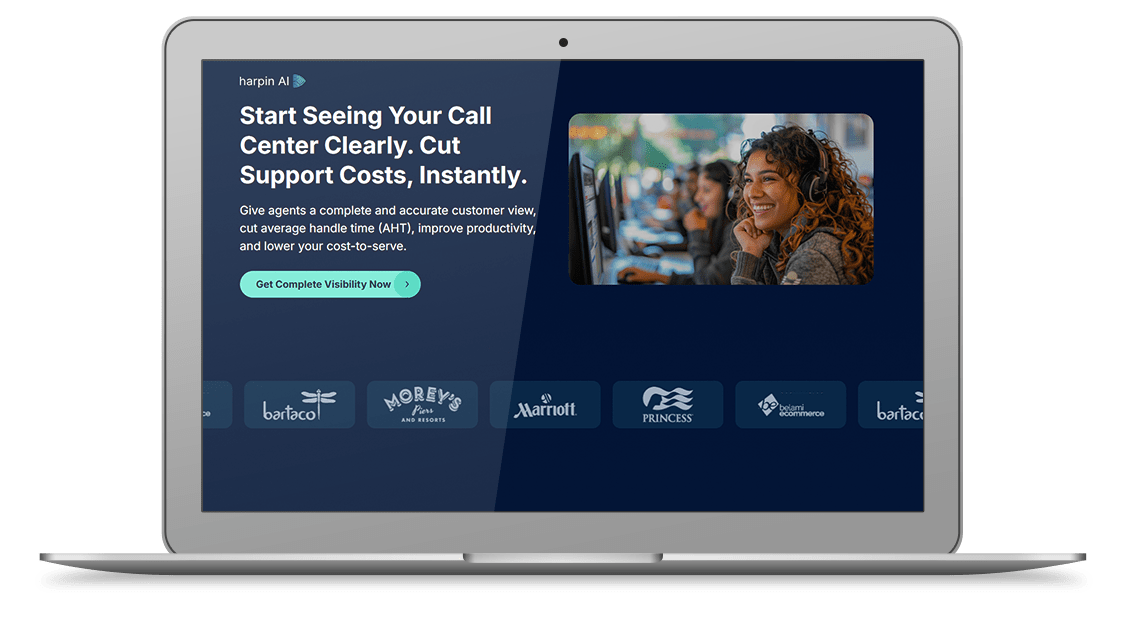 Redesigned the Harpin AI website in a focused 2-week sprint, delivering 15 fully responsive pages that highlight the platform’s real-time call center visibility, cost-saving insights, and operational intelligence. The updated design clarified complex AI-driven messaging, emphasized trust through modern visuals and motion-led interactions, and created a clear narrative around Harpin’s decision intelligence platform for enterprise leaders. The result was a faster, more cohesive user experience that strengthened Harpin’s credibility and engagement with executive-level prospects.