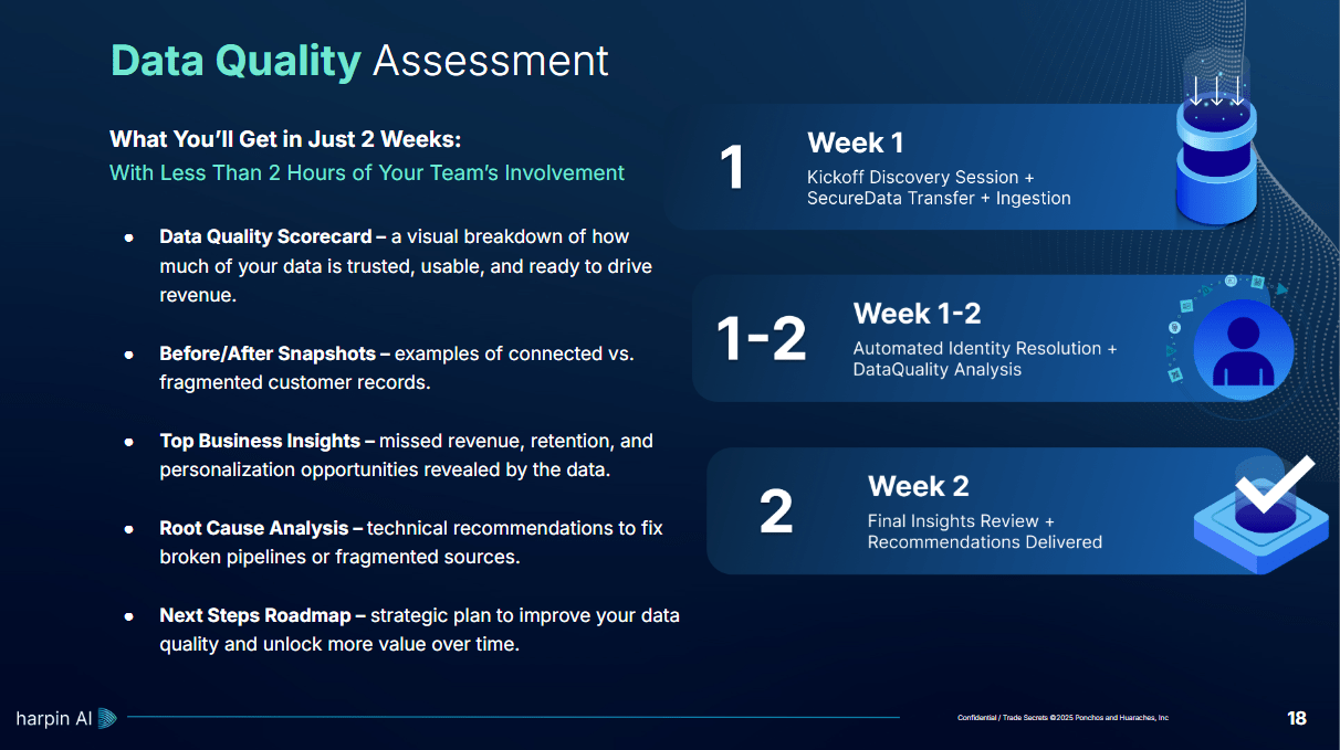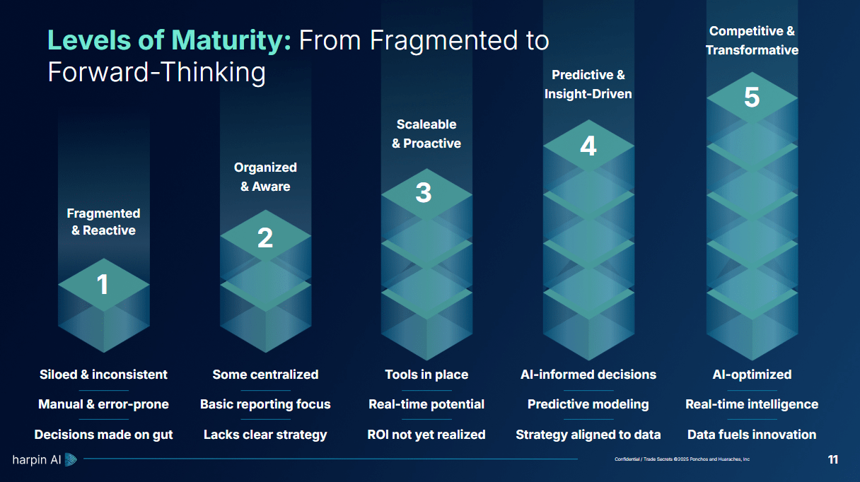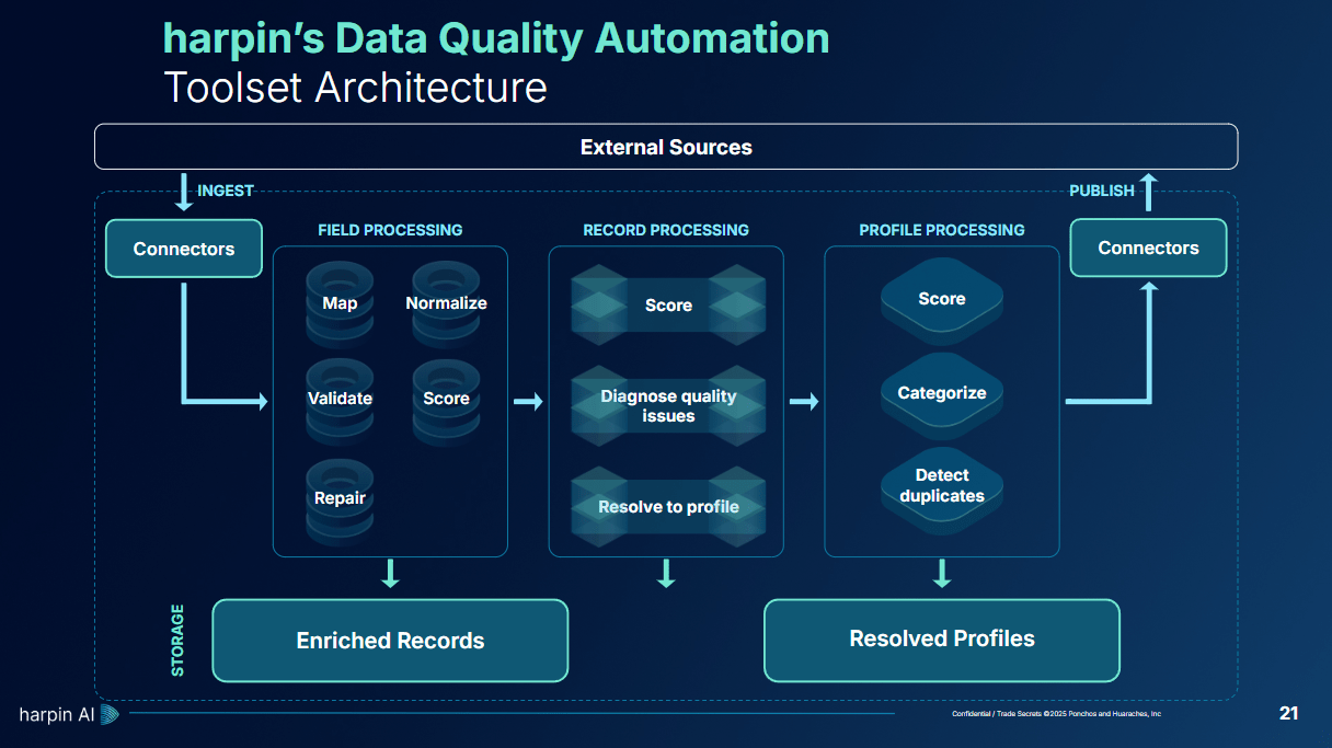 Standardization Fatigue: Across the landscape, claims like “AI-powered analytics” and “data quality at scale” are repeated so often they lose meaning. To stand out, Harpin must reframe around outcomes: faster decision cycles, margin growth, and smoother customer experiences.